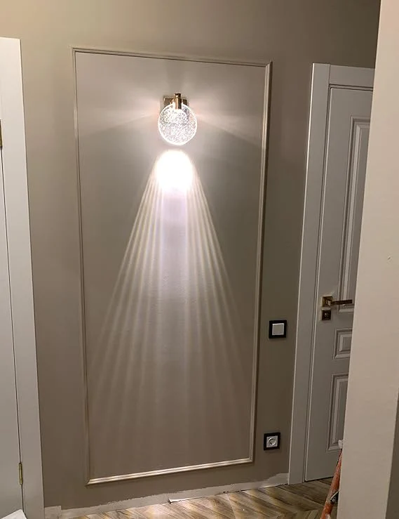 - Excellent style: this vintage wall light is designed in a round shape. The beautiful white bubbles in the transparent crystal lampshade make this crystal wall light look very dreamy. In addition, the wonderful combination of transparent crystal lampshade and gold/silver aluminium lamp body also give this crystal wall lamp a luxurious and elegant feeling. Can be used as a beautiful wall decoration to decorate your home.