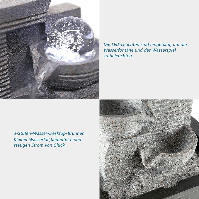Living White Light LED Indoor Fountain, Living Room Desk Fountain Decoration with Lighting, Resin, 17 x 22 x 25 cm